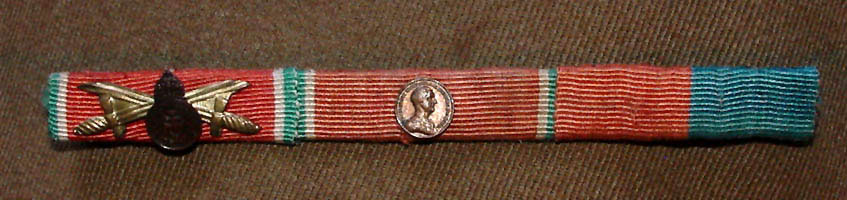 From left to right: The 'Signum Laudis' medal in bronze with swords (which designated it as a bravery award) and 'war' ribbon (issued as of 1939). The medal was instituted in 1922 and originally was in two classes, silver and bronze. A gold class was added later.