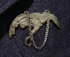 Szaposznikow's Polish pilot wing. This is a really nice wing made in Britain by Firmin jewelers. The detail is very strong and the chain is unique as most were a more common link chain as opposed to this more well made flat chain. The back shows the jeweler's hallmark. |